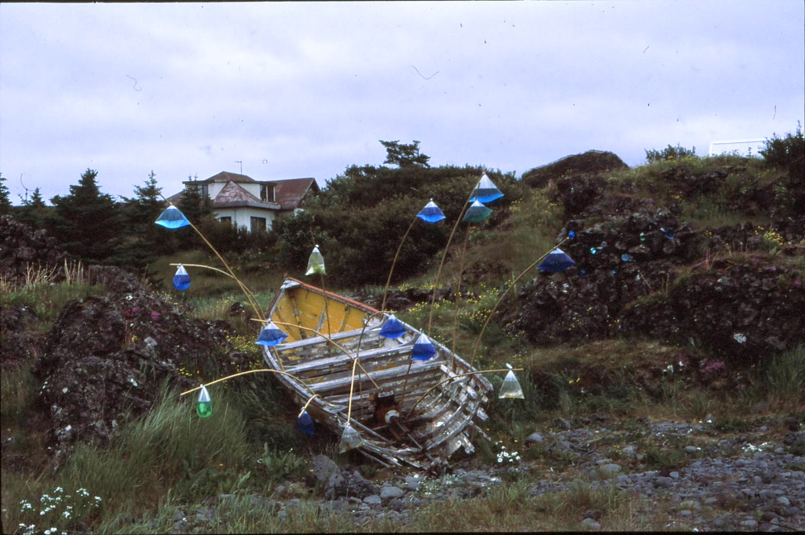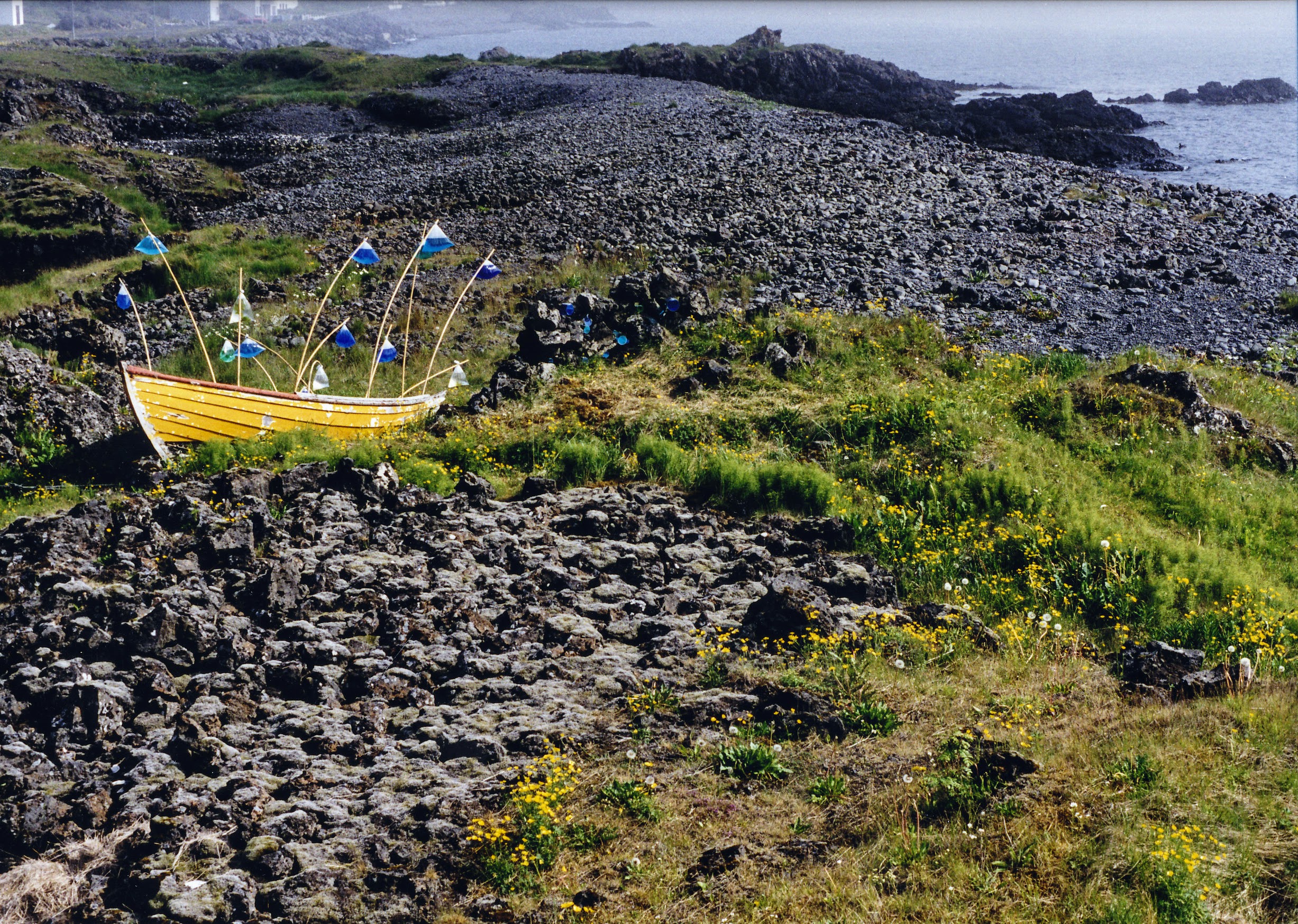 The exhibition programme in Lightcliff art center was very ambitious and specialised. It aimed for each artist to produce work especially tailored to the natural surroundings of the place, something that had rarely be done in Iceland before.The exhibition space was in a building that had formerly been used for working fish, alongside the lava, close by the sea. A home for old seamen was nearby, I got in contact with some of them in the purpose to draw their shadows which I then painted white on glass. Above each shadow was a photo from an archive of the Icelandic association for sea rescue. The relation between man and sea, the shadows, danger of the ocean, the boat carcass, the refraction of light in the water...