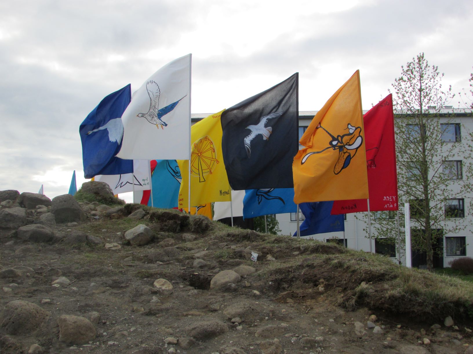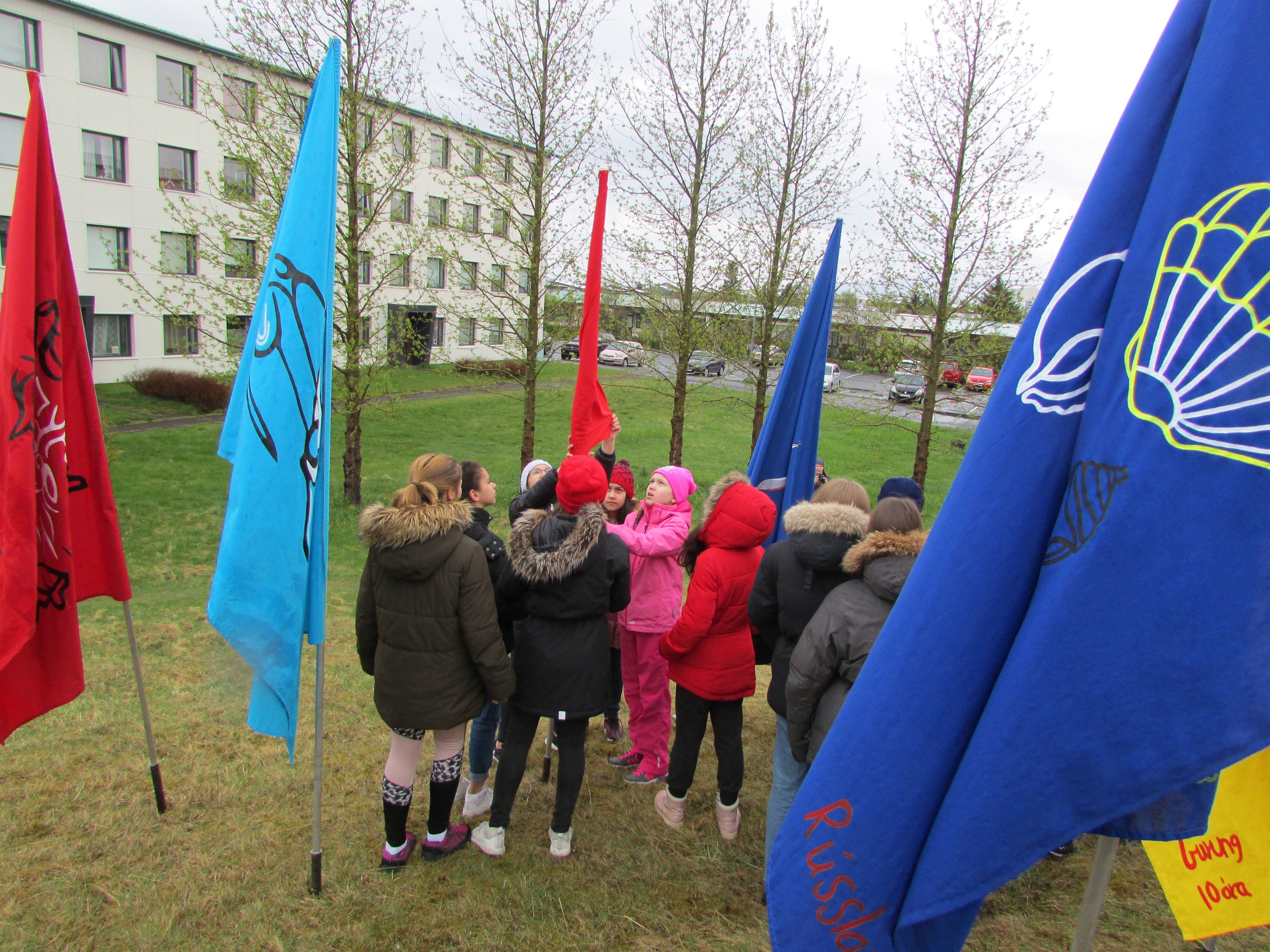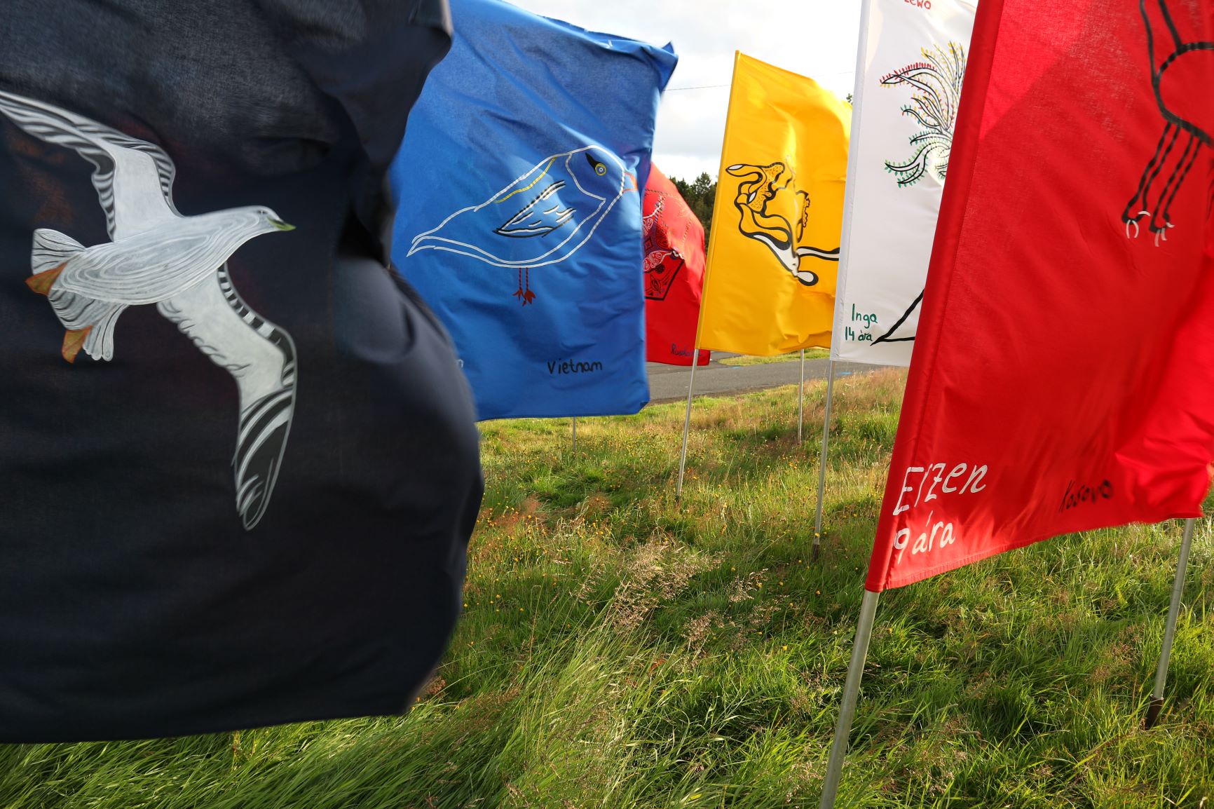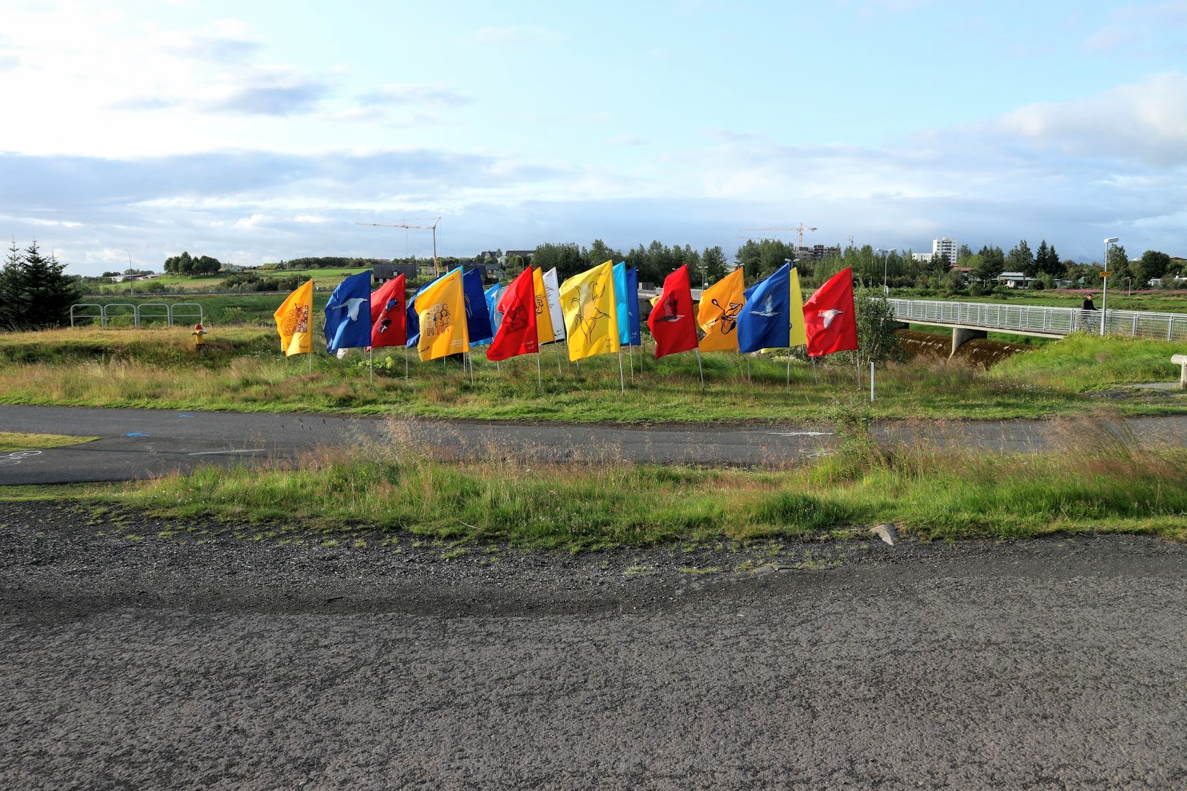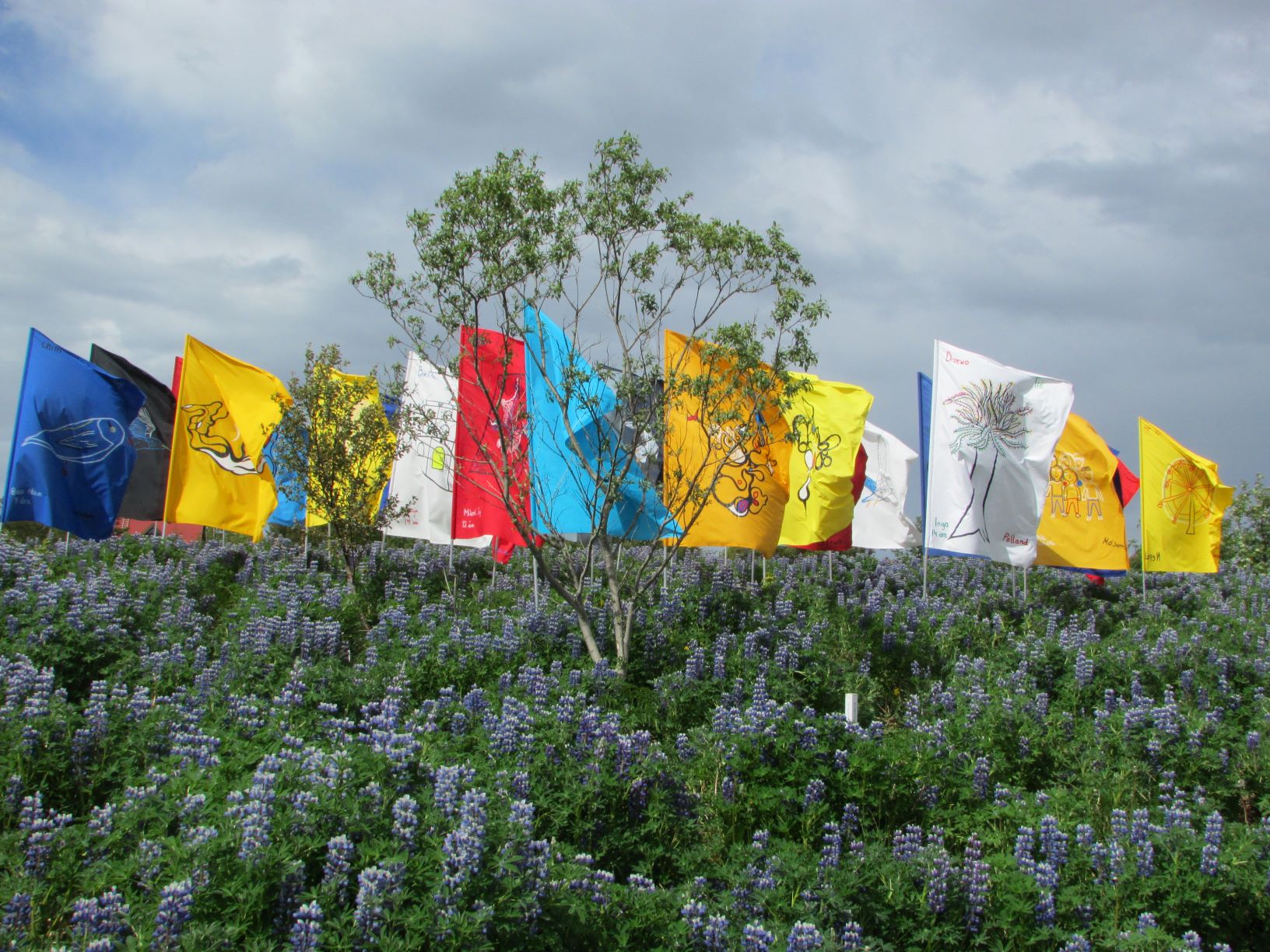 The exhibition Suburb was held ahead of the Reykjavik Association of Sculptors 50 year anniversary. The title, references its location in the Breiðholt district which is the first organized suburb of Reykjavik and one of the city´s most populous and diverse district where more than one third of the population are immigrants. I created participatory piece through a dialogue with students from 18 countries in Fellaskóli elementary school. The work was based on the students personal drawings of memories from their homeland which I painted on linen. I added my own flags for example of birds and installed an extensive flag installation in selected areas of the district, where flags were hoisted on certain days during the exhibition.